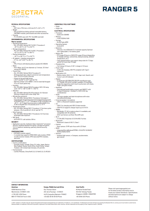 Spectra Geospatial Ranger 5 Basic (Non-WWAN) Worldwide Region